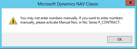 Contract: - Message - You may not enter numbers manually. Contract list error.