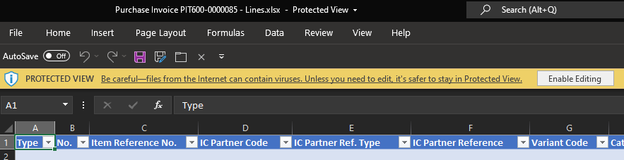 Excel: Add dimension codes to a 'Edit in Excel' Data Source.