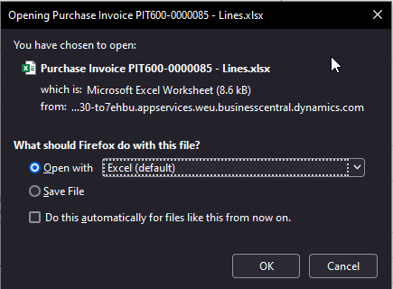 - Choose 'Open in Excel' vs Save File.